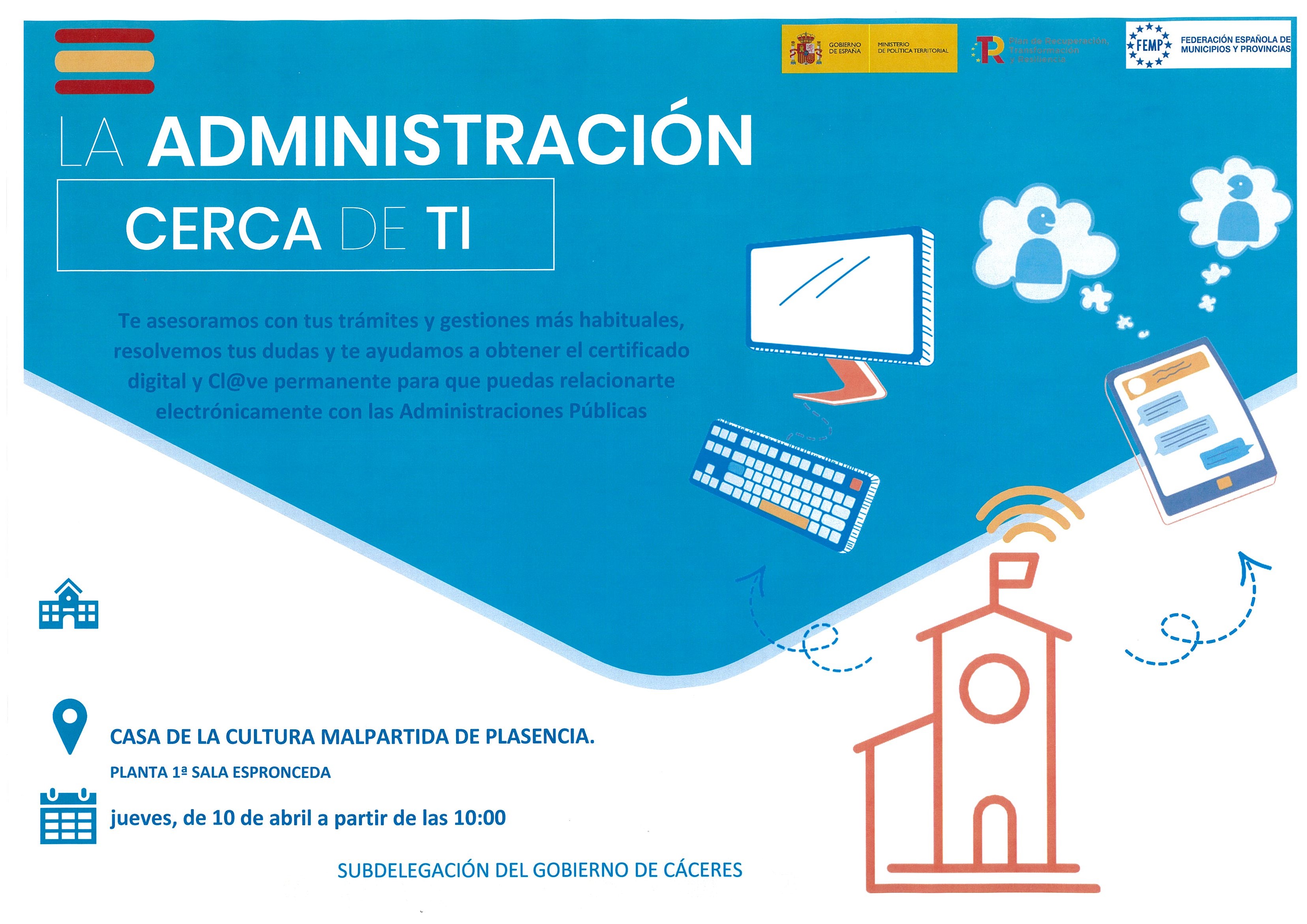 El jueves 10 de abril a partir de las 10 de la mañana en la Sala Espronceda de la Casa de la Cultura estarán los Técnicos del Programa " La administración cerca de ti ", servicio para acercar la Administración a la ciudadanía donde te pueden asesorar para realizar los siguientes trámites: