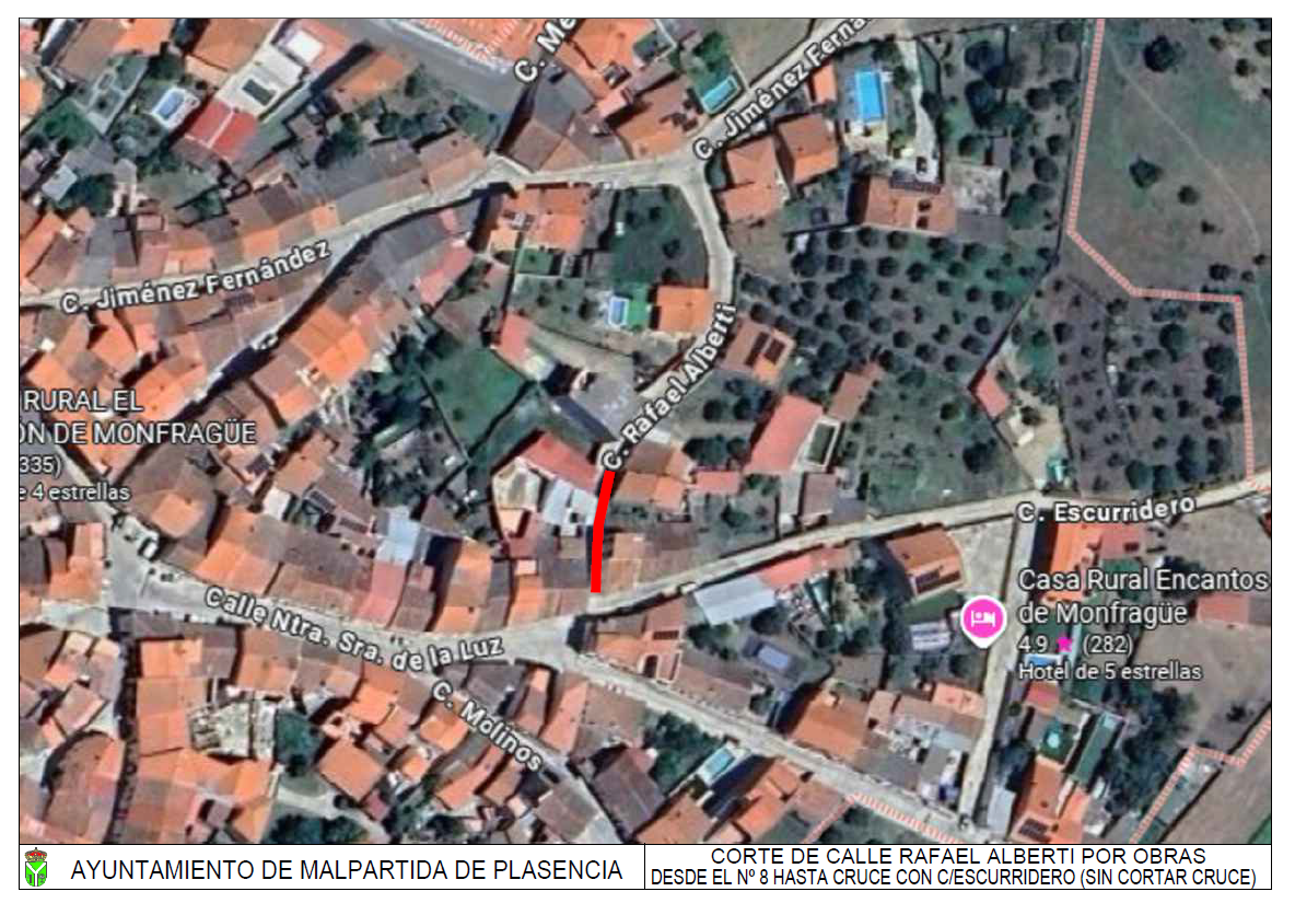 Comunicamos a todos los vecinos de la zona, que el proximo Lunes, dia 06 de Octubre, desde las 8:00h, se va a realizar un corte de trafico, con motivo de reparación de una averia, en la calle Rafael Alberti, que abarcara desde el Numero 8 de la citada calle, hasta el cruce con la calle Escurridero y Nuestra Señora de la Luz, quedando estas calles libres del corte.
