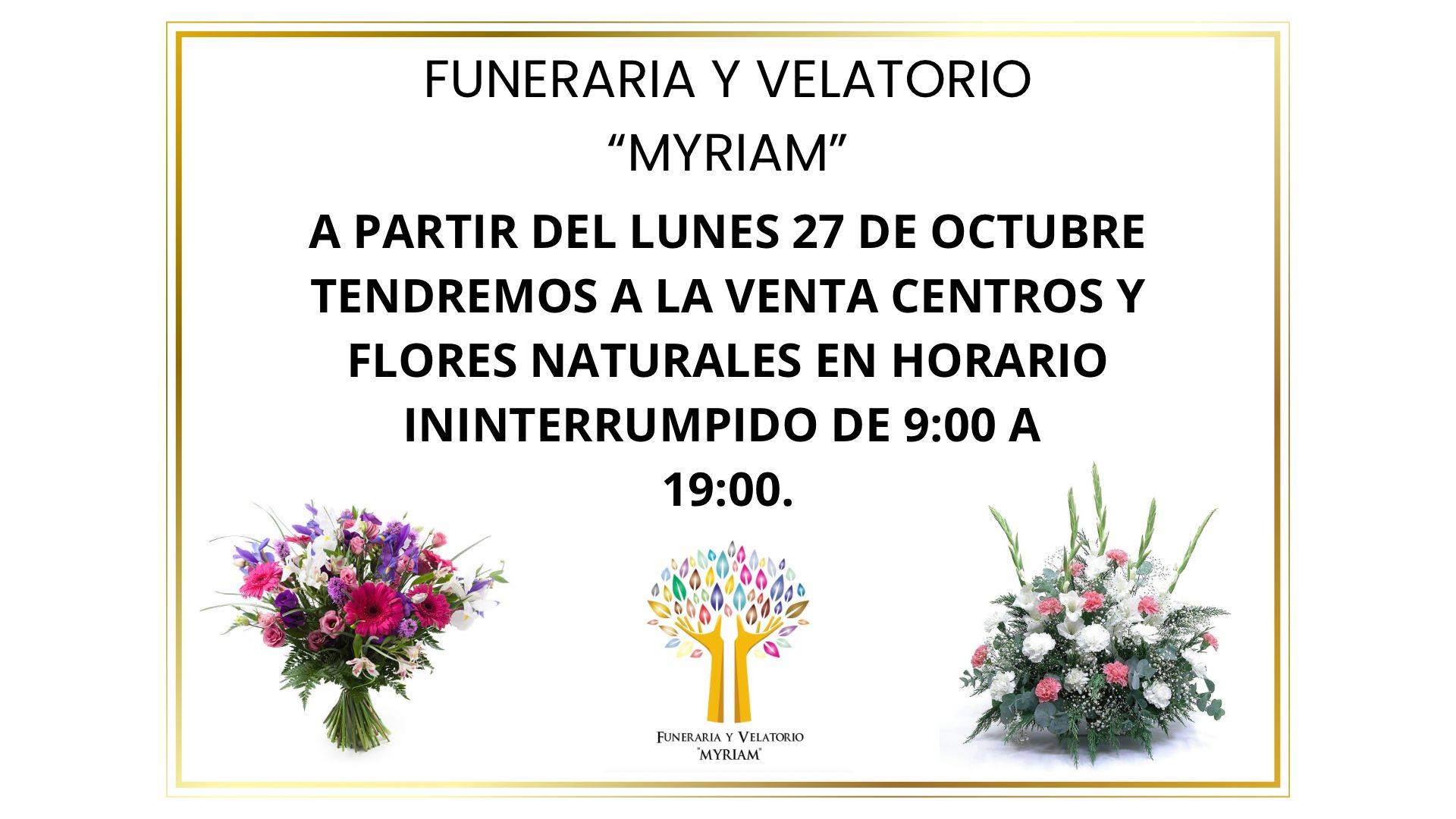 A partir del lunes 27 de Octubre tendremos a la venta centros y flores naturales en horario ininterrumpido de 9:00h a 19:00h.