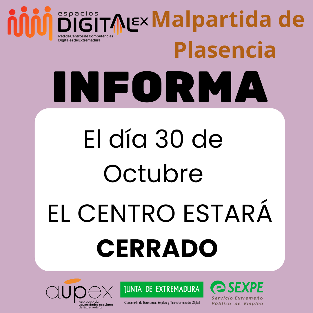 Hoy 30 de octubre el centro estará cerrado.