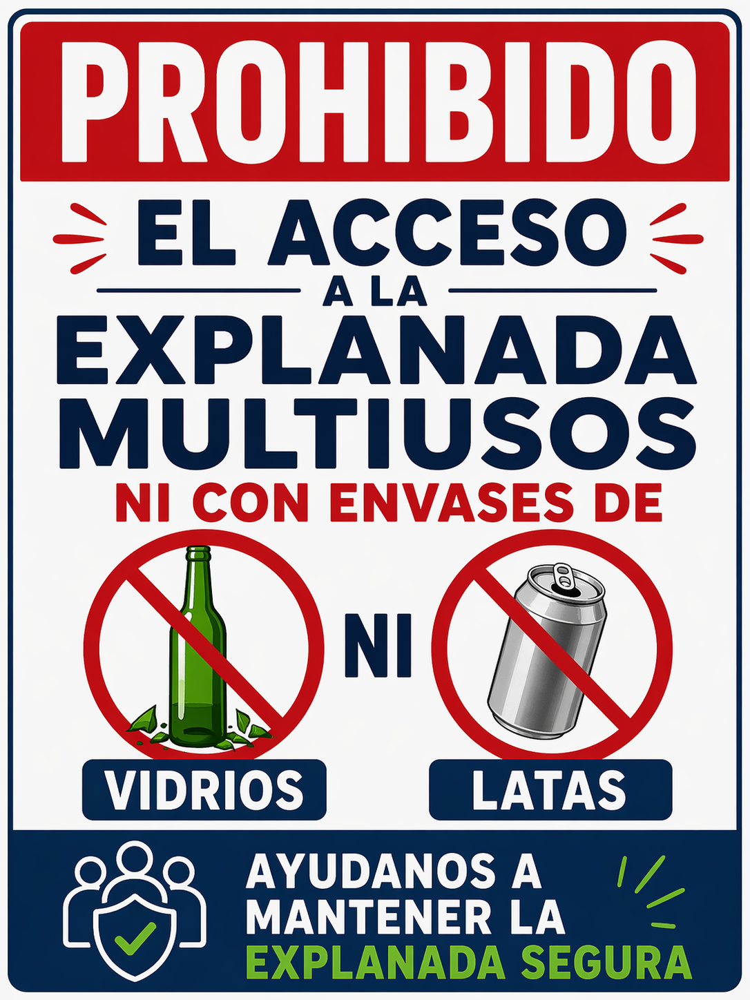 QUEDA PROHIBIDO EL ACCESO A LA EXPLANADA MULTIUSOS CON VIDRIOS Y LATAS